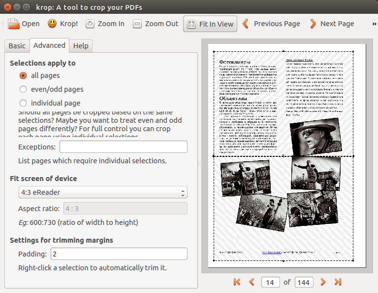 A unique feature of krop is its ability to automatically split pages into subpages to fit the limited screen size of devices such as eReaders. This is particularly useful, if your eReader does not support convenient scrolling.